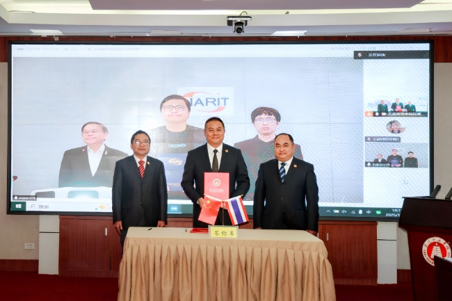 在双方参会人员的共同见证下,段红云校长与Wiphu Rujopakarn所长通过云端签署合作协议。学校将以此次合作为契机,持续拓展与泰国国家天文研究所在科学研究、人才培养、学术交流等方面的多层次合作,进一步提升学校的国际化办学水平与科研影响力。
