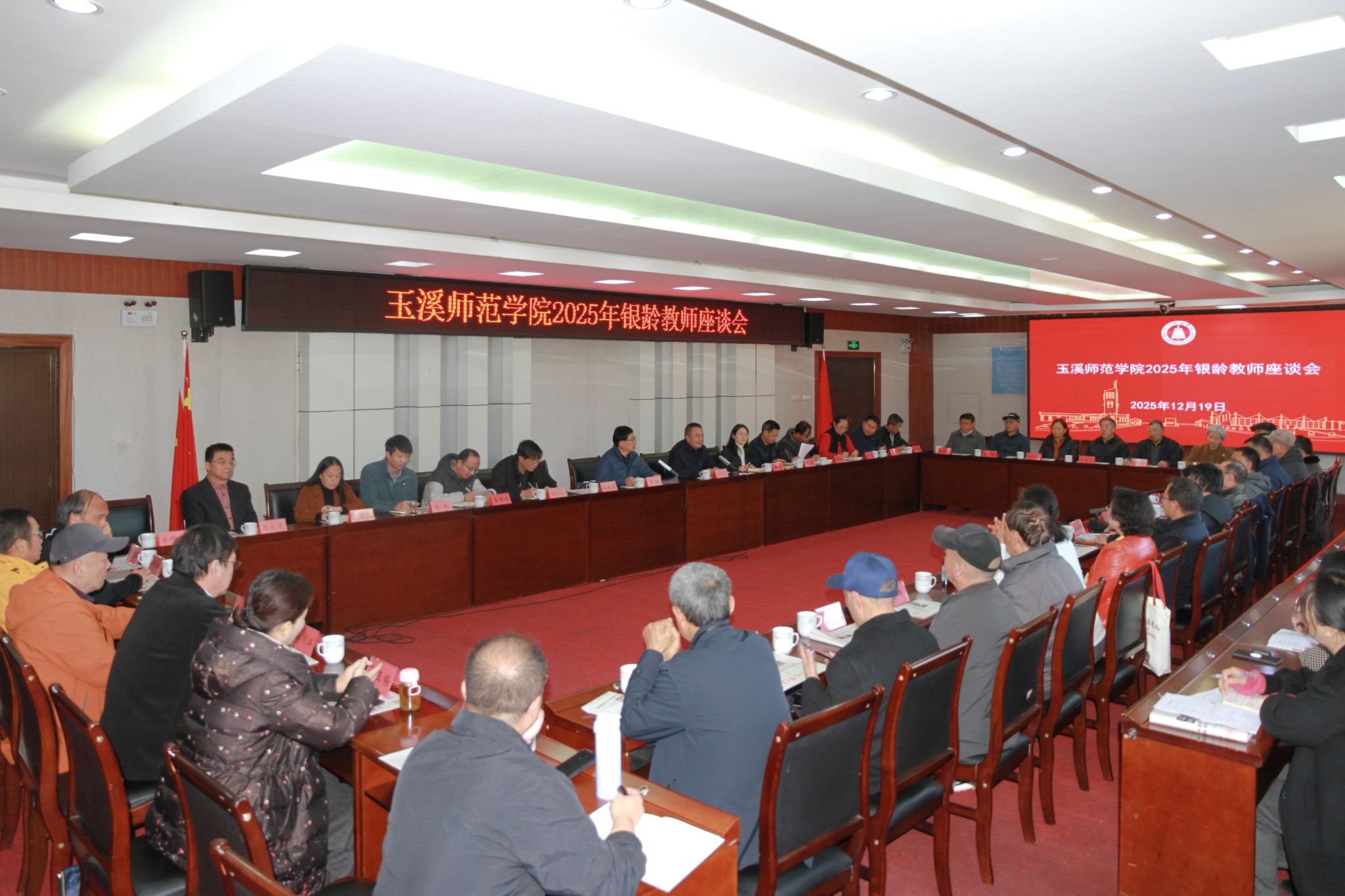 为持续深入贯彻落实人才强校战略,充分发挥银龄教师在教育教学、科研创新和人才培养中的示范带动作用,进一步夯实教师队伍建设根基,全面加速学校高质量发展步伐,12月19日下午,玉溪师范学院2025年银龄教师座谈会在图书馆3003会议室召开。校党委副书记、校长段红云出席并讲话。校党委副书记杨光,副校长章新、李涛,银龄教师代表及相关职能部门负责人参加座谈。