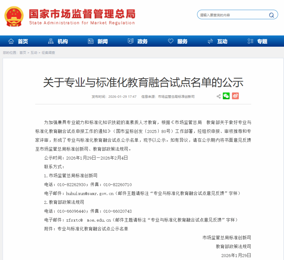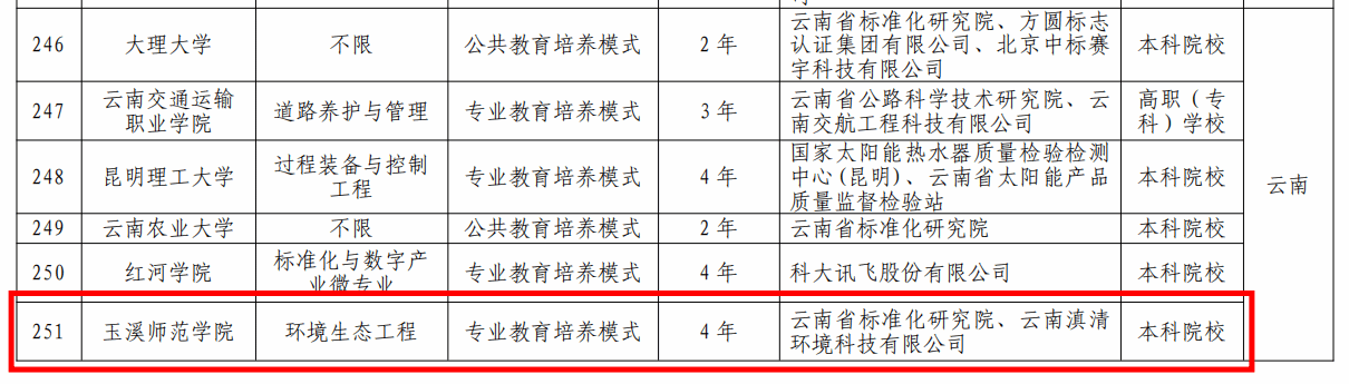 近日,国家市场监督管理总局、教育部联合发布《关于专业与标准化教育融合试点名单的公示》,玉溪师范学院化学与环境工程学院环境生态工程专业成功入选,这是我校首次在专业与标准化教育融合领域获国家试点建设项目。