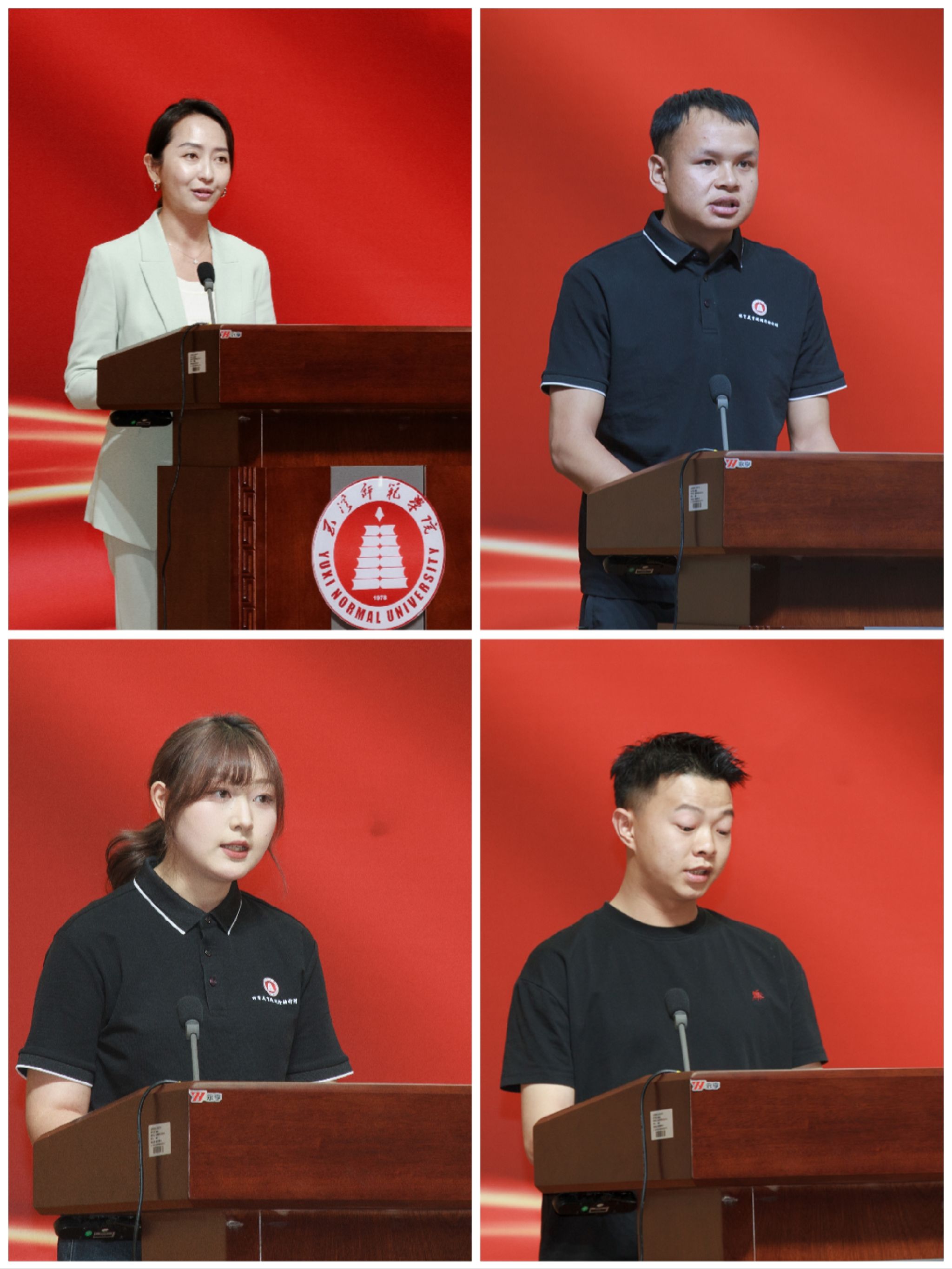 第五期优秀师生代表依次登台交流分享。音乐学院范钰湘作为优秀带队教师代表交流分享,体育学院赵玉成、美术学院宋佳琪、音乐学院李赛等优秀支教学生代表依次发言,分享支教经验与心得。
