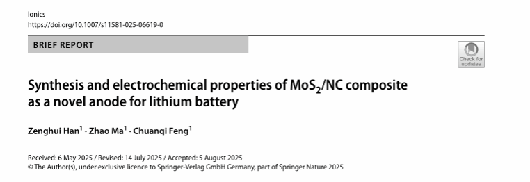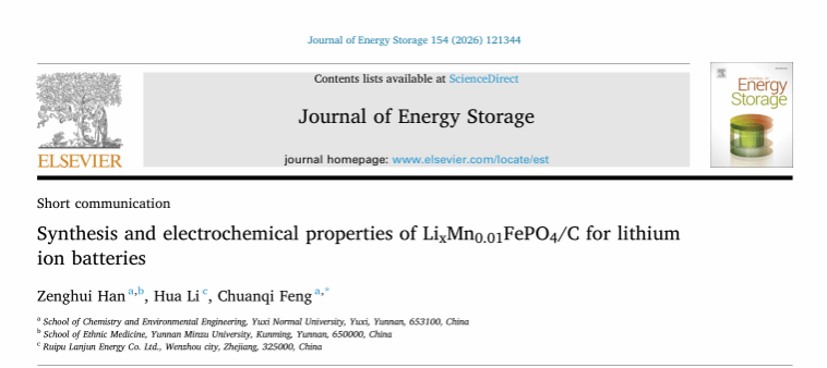 近日,玉溪师范学院化学与环境工程学院银龄教师冯传启教授带领科研团队,在锂离子电池材料领域连续取得突破性进展,相关研究论文 Synthesis and electrochemical properties of LixMn0.01FePO4/C for lithiumion batteries 和 Synthesis and electrochemical properties of MoS2/NC composite as a novel anode for lithium battery,分别发表于 Journal of Energy Storage (中科院二区期刊,IF:9.8)和 Ionics (IF:3.2),为新能源电池领域的技术创新提供了新路径。