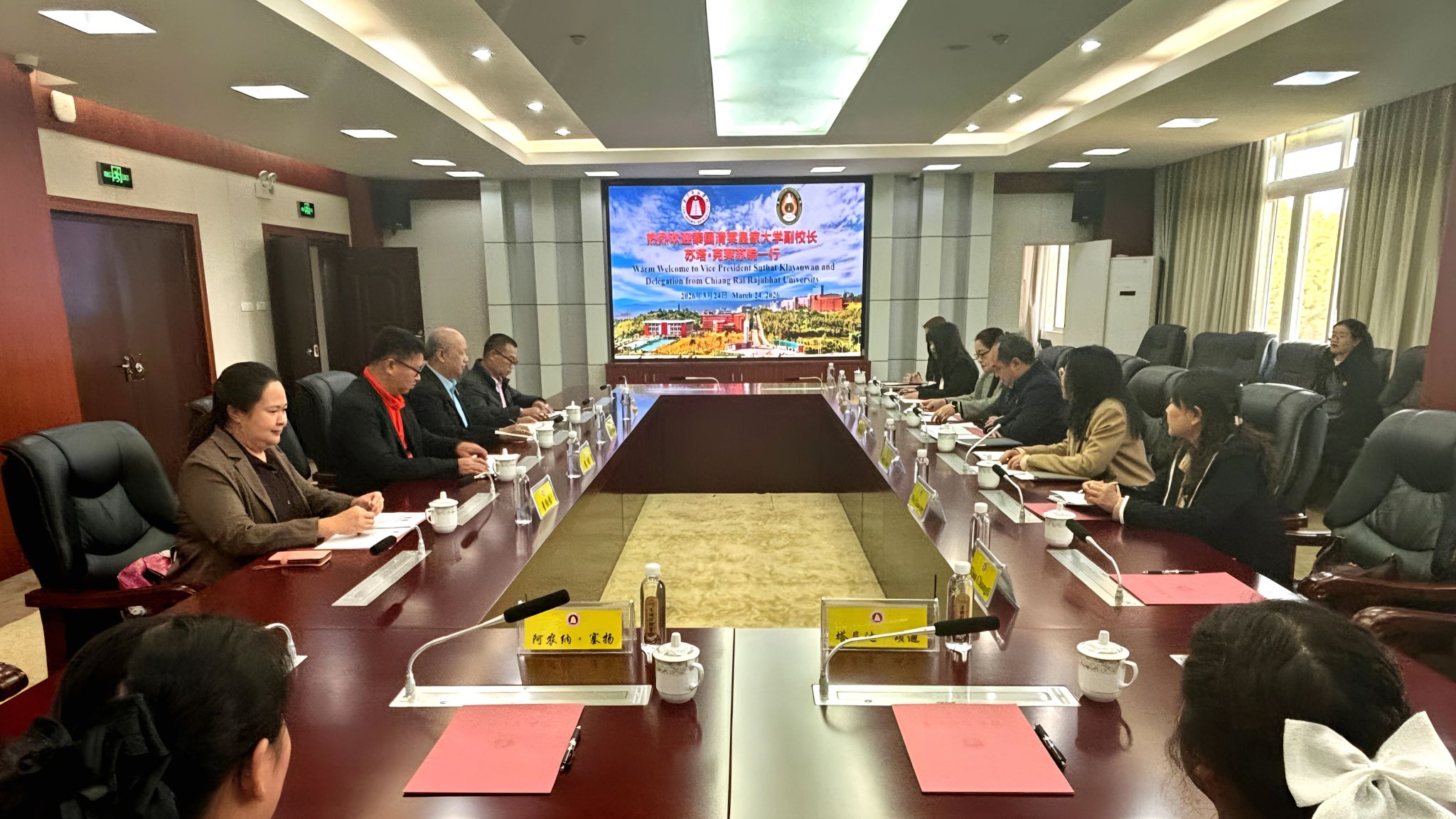 3月24日上午,泰国清莱皇家大学副校长苏塔一行到校访问交流,双方在图书馆6005室举行合作座谈会。玉溪师范学院副校长杨伟,对外合作交流处、外国语学院相关负责人及泰语专业教师代表参加座谈。
