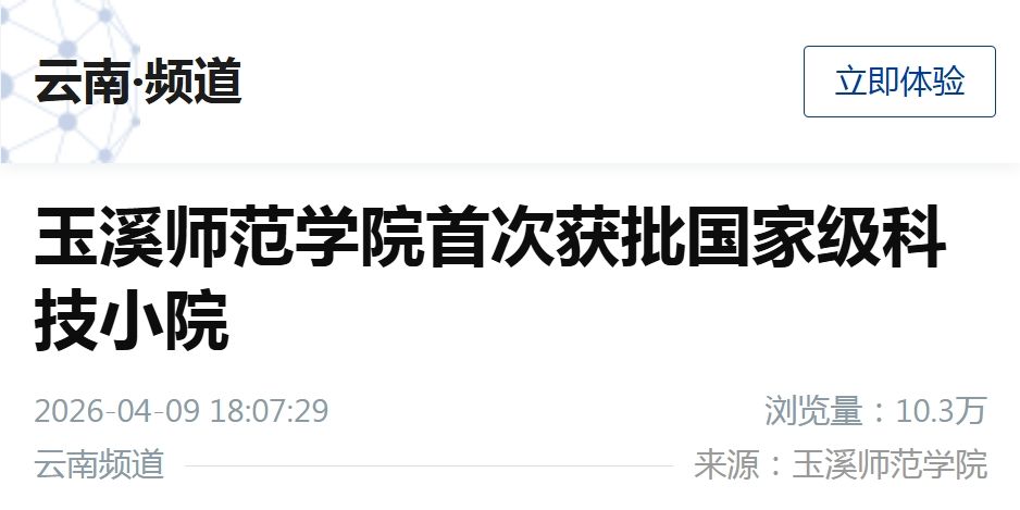 信息来源:玉溪师范学院 作者:云南频道 编辑:张国珺 审核:新闻中心 时间:2026年04月10日 13:58 阅读次数: 发布:媒体玉师