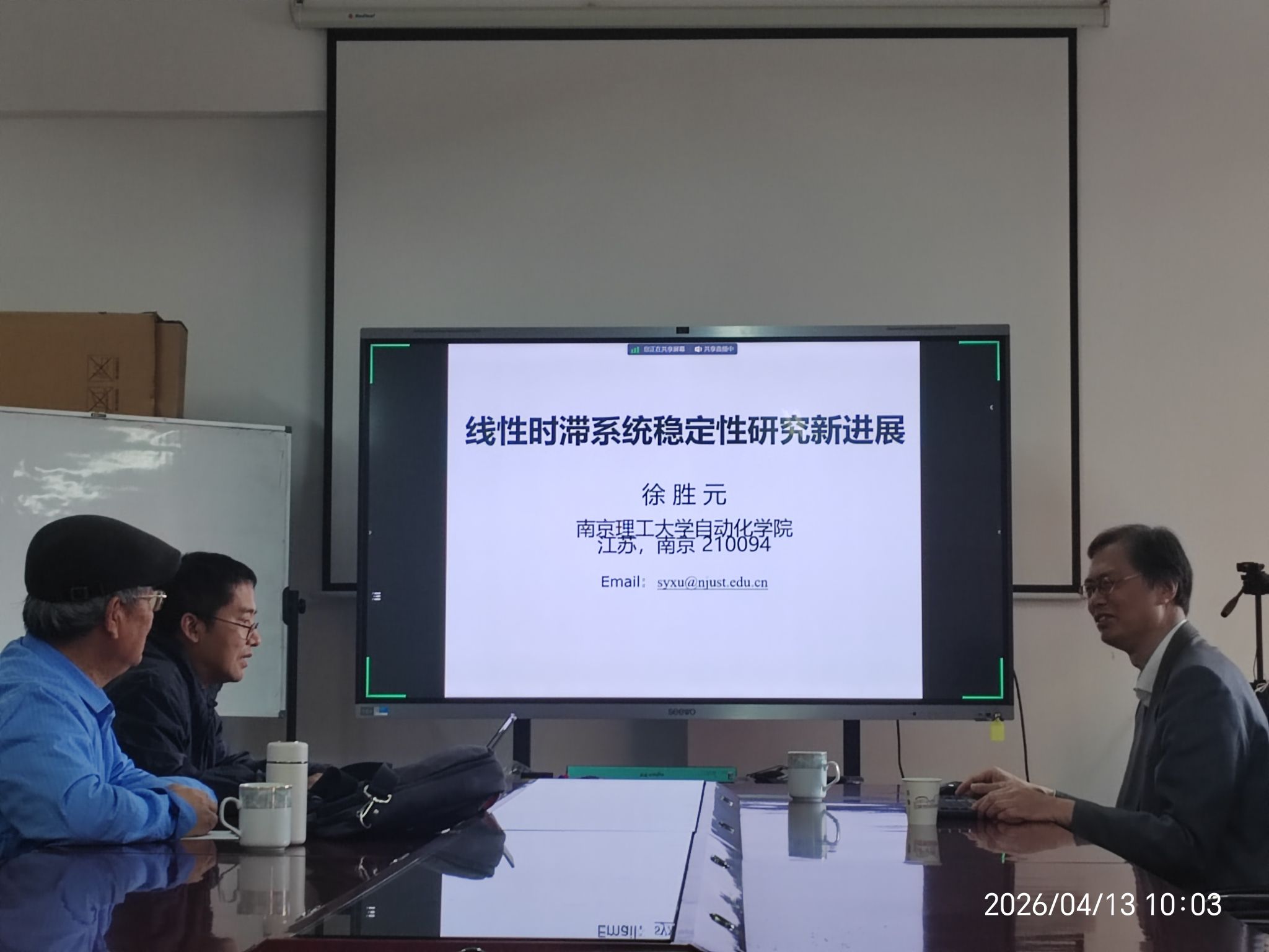 报告会上,徐胜元教授围绕时滞系统研究背景、时滞系统稳定性主流研究方法、Lyapunov‑Krasovskii 泛函方法应用三大核心内容展开系统阐述,同时介绍了线性时滞控制系统近年来的研究进展,指出当前亟待突破的前沿科学问题,为师生开展相关科研工作指明方向、提供清晰思路。