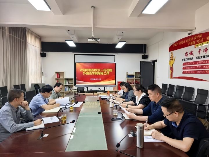 为深入贯彻落实新时代教育数字化战略,切实提升学生全球胜任力,4月14日下午,副校长章新,教务处副处长李学儒、师洪一行赴外国语学院开展大学英语教学改革专题调研。调研围绕教学改革实施、基层教学组织运行、课程体系优化及智慧课程建设等重点工作进行深入交流与指导。外国语学院党委书记张敏,院长刘吉俊、副院长付丽彬,大学英语教研室主任瞿海萍、副主任禹宏亮等参与调研座谈。
