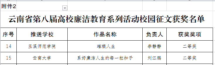 为深入学习贯彻党的二十大精神,进一步推进“清廉学校”建设,按照《中共云南省委教育工委办公室关于开展第八届高校廉洁教育系列活动的通知》要求,今年3月学校组织开展了“廉洁润初心 铸魂担使命”廉洁教育系列活动。经校纪委、校团委共同组织遴选,推荐“廉心文语”校园征文作品10篇、“润心话语”视频征集作品10个、“清心妙语”创意征集作品10个、廉洁教育工作案例3个至云南省委教育工委参赛。