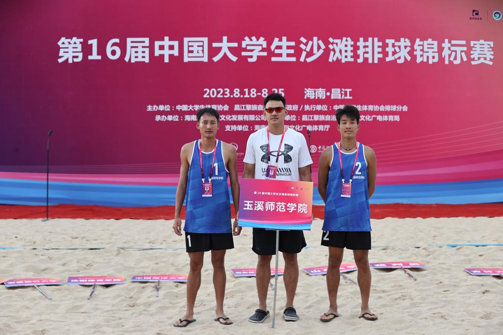2023年8月18日-8月25日,第十六届中国大学生沙滩排球锦标赛在海南昌江黎族自治县万国酒店沙滩排球场火热开赛,我校排球队首次参加全国赛事,在主教练初立伟老师的带领下,队员们发扬女排精神,顶烈日、战酷暑,在赛场上团结协作、顽强拼搏,最终获得高水平组第九名的成绩,取得了历史性的突破,展现了玉师人的精神风貌。