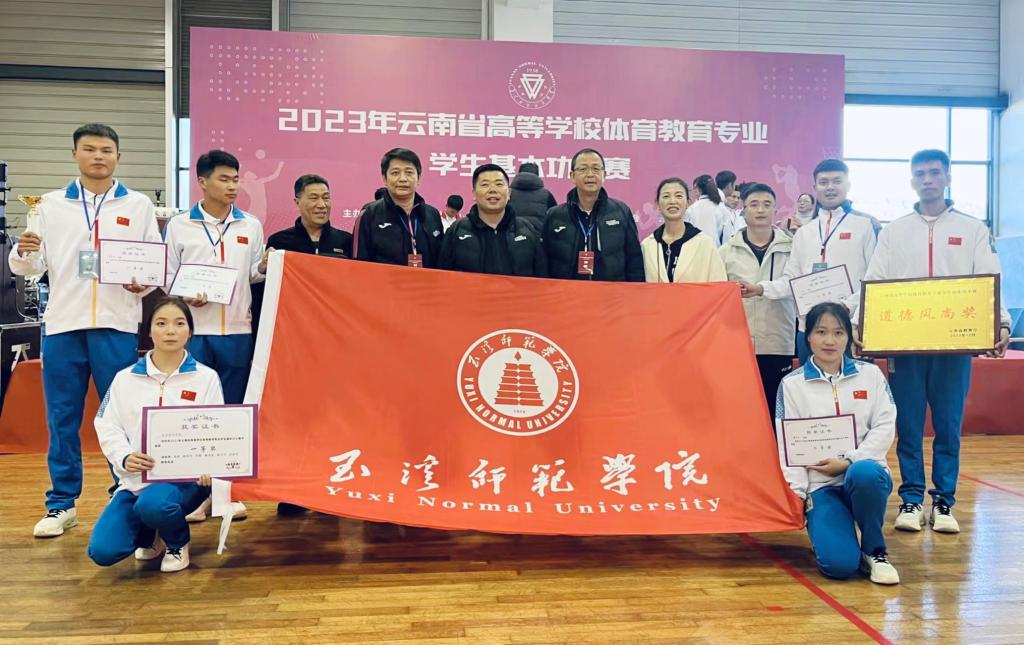 今年10月,云南省教育厅为进一步提高全省高校本科体育教育专业办学质量,促进专业综合改革与发展,展示体育教育专业学生的专业素质和精神风貌,决定于12月6日至9日在云南师范大学举办2023云南体育教育专业学生基本功大赛。接通知后,玉溪师范学院体育学院党政领导班子十分重视此次比赛,成立体育教育专业学生基本功大赛训练组,由赵兴武、冯艳琼负责总训练,班主任李雨霖负责日常管理与训练保障,陈镜妃、王绍芬、陈瑾榕、李俊恒、李唤春、初立伟等12名教师组成训练团队,经过近2个月刻苦训练,终获佳绩。在10门专业教育理论课程知识考试,队列队形、教学设计和片段教学三个方面的专业教学能力展示,田径、体操、武术、篮球、足球、排球6项专业运动技能竞赛中,都展现出了过硬的专业技术能力、扎实的教学基本功和良好的精神风貌,为学校赢得了荣誉。