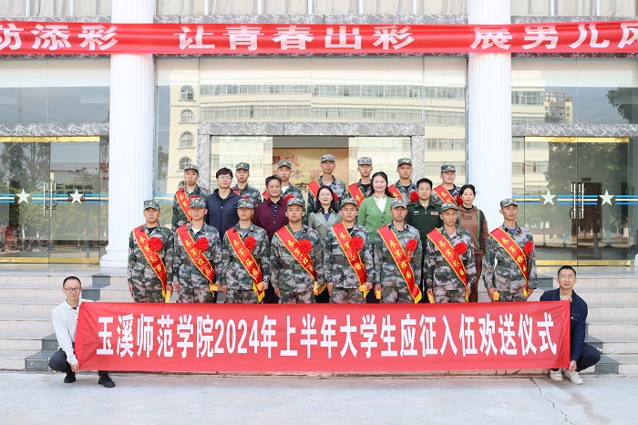 3月13日上午,玉溪师范学院举行2024年上半年大学生应征入伍欢送仪式,为即将踏上军旅征程的同学们送行。学校党委副书记杨光,学校武装部部长张春霞、副部长褚小波,红塔区征兵办军事科科长姜勇,应征入伍大学生所在学院教师代表等参加活动。欢送仪式由张春霞主持。