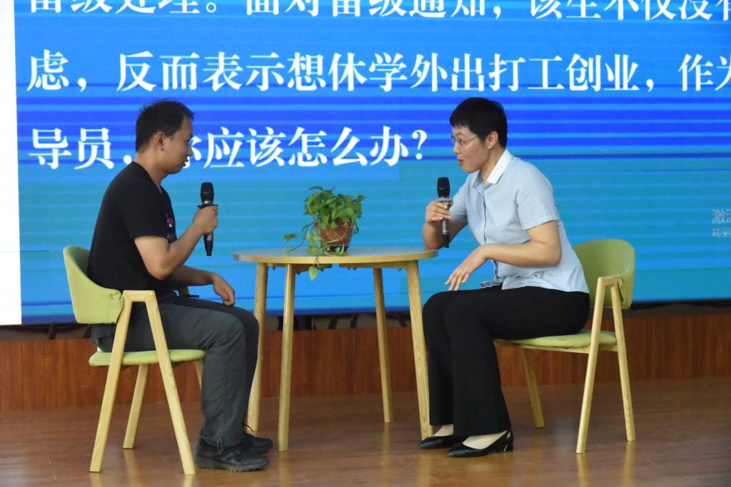 最后,校党委副书记杨光作总结讲话。她指出辅导员素质能力大赛是对辅导员业务能力的一次体检,辅导员们的综合素质能力代表学校形象,体现了学校辅导员队伍建设和学生工作的水平,要提高站位,重视辅导员素质能力提升工作。辅导员要善于苦中寻乐,在服务学生成长成才的过程中体味辅导员工作的甘甜和价值。希望辅导员们通过总结反思,不断提升辅导员职业能力和专业素养;将学习提升职业能力和专业素养作为一项工作任务去落实,不断提高自身知识储备和育人水平,让育人工作有理有据,思政教育入情入理。同时,要求学生工作部门组织好参加省赛准备,聚合能量,以点带面,充分展现我校学工队伍的能量和风采。