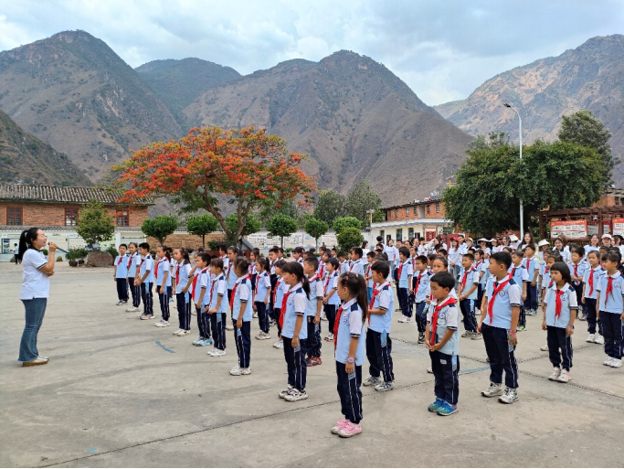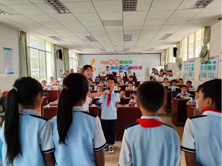 志愿者们在国旗下向孩子们讲述了聂耳创作国歌的故事,还开展了《中华人民共和国国歌法》的普法宣讲,向孩子们普及国歌相关的法律法规,进一步规范孩子们国歌奏唱礼仪,并在国旗下同唱国歌。