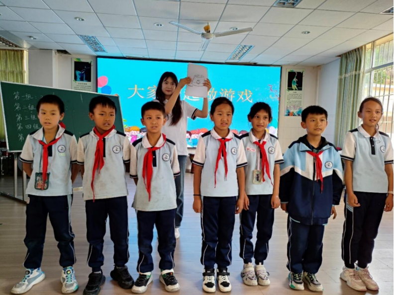 活动中,志愿者们结合绿汁向孩子们介绍了“科普周”的意义、内容,组织了“你画我猜说爱国”“我爱你祖国声声传”等口语互动游戏。