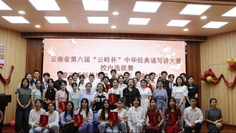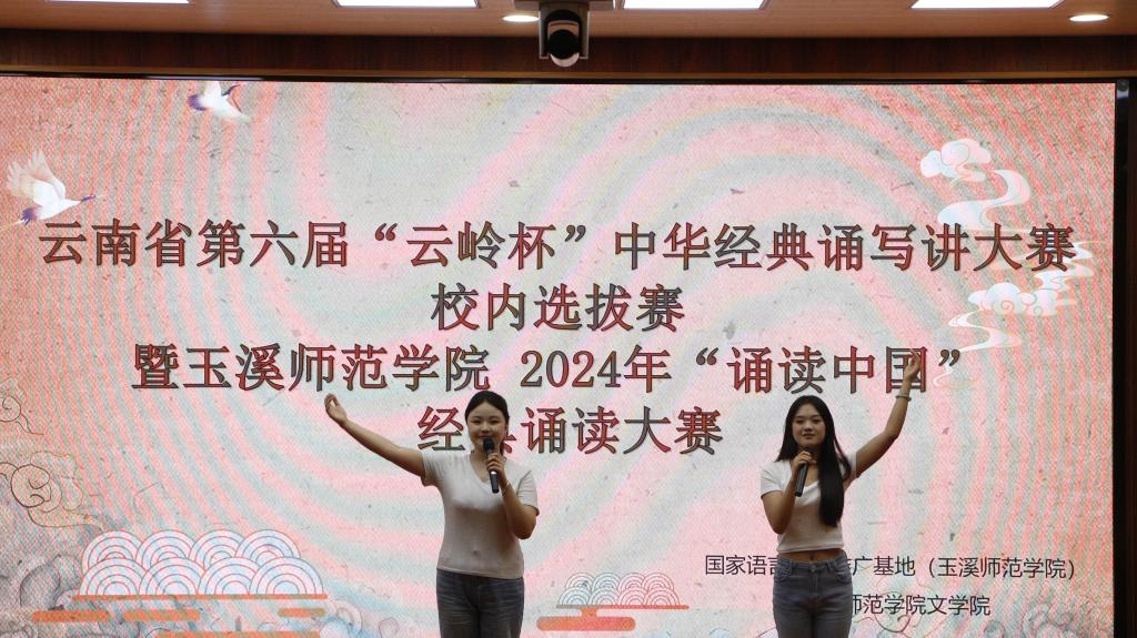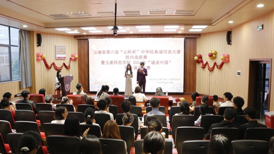 诵读古今经典,弘扬中国精神。为加大国家通用语言文字推广力度,传承发展中华优秀传统文化,深入推进“典耀中华”主题读书行动,由学校语委、国家语言文字推广基地(玉溪师范学院)主办,文学院承办的云南省第六届“云岭杯”中华经典诵写讲大赛校内选拔赛暨玉溪师范学院2024年“诵读中国”经典诵读大赛顺利举行。