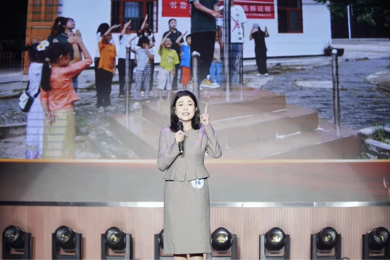 比赛过程中,王艺潼老师通过一张张照片,生动讲述玉溪师范学院师生以组织开展大学生暑期社会实践活动、“国旗下的讲话”主题活动等多种形式,传承红色基因、传习革命传统、传唱红色歌曲,将“聂耳和国歌的故事”讲遍祖国山川大地的故事。