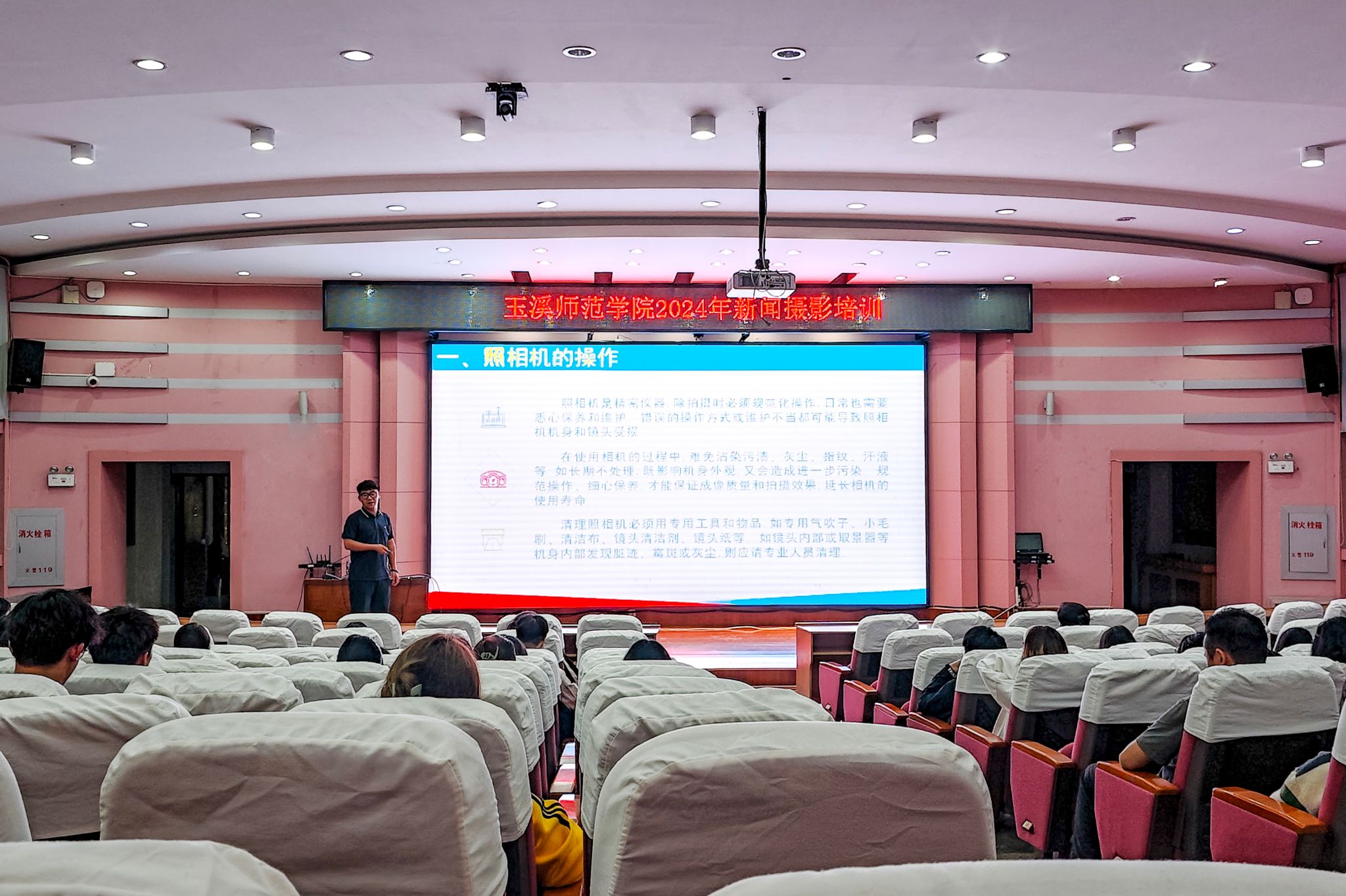 为充分发挥第二课堂育人平台作用,进一步提升大学生记者、团学干部的新闻媒介素养,10月25日晚,由学校党委宣传部、新闻中心主办的玉溪师范学院2024年秋季学期新闻业务培训在科学讲堂举行。大学生记者团全体成员,校团委、校学生会、校青协学生代表,各学院团委、学生会干部共200余人参加培训。