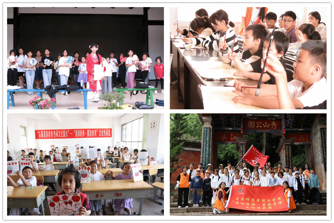 玉溪师范学院文学院“浸润经典•同心筑梦”民族团结实践团一行12人于2024年7月15日—21日走进通海县兴蒙中心小学,开展第九届“童成长•嗨起来”大学生假期志愿服务活动。除开展常规假期学业辅导、读书分享、安全教育外,实践团还结合实践队员的专业知识与特长开设了“共读诗经”“非遗乐学”“诗海拾贝”等特色课程。实践团跟随蒙古族服饰市级项目非遗传承人赵清丽老师的脚步走进蒙元历史文化博物馆,采访非遗传承人、民间手工艺人和民族团结进步模范代表,聆听蒙元历史故事,和小朋友一起制作非遗漆扇,体验射箭项目。