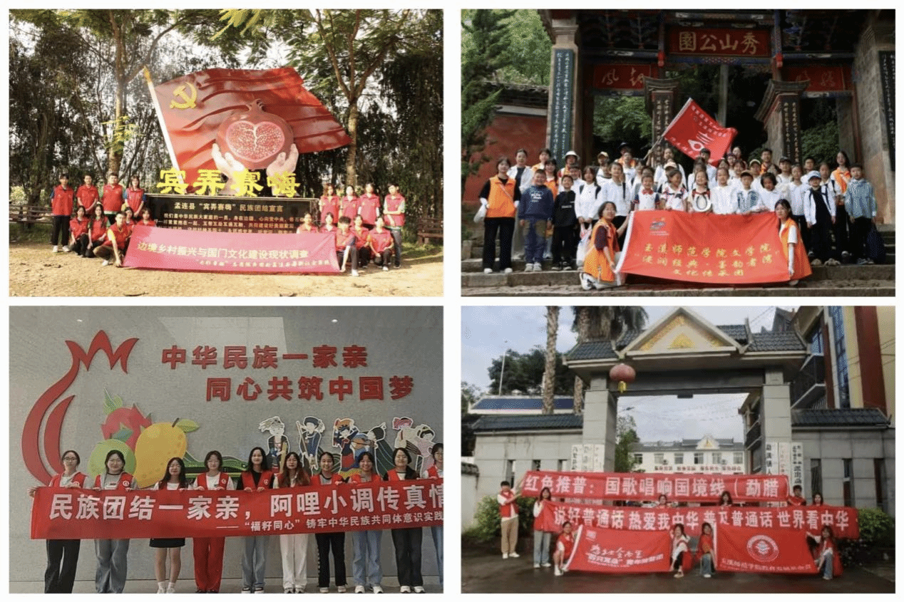 深化社会实践。依托暑期“三下乡”社会实践,组建“浸润经典·会泽百家”志愿服务团、“浸润经典·墨韵者湾”文化传承团等4支团队,45名实践团成员赴通海县、会泽县等地,探寻楹联、茶文化等非物质文化遗产,传承中华优秀传统文化。组建“七彩童趣”志愿服务团、“四只耳朵”青年推普团勐腊小分队、“福籽同心”铸牢中华民族共同体意识实践团等11支实践团队,187名实践团成员来到文山、普洱、怒江等民族聚集村寨,通过推广普通话、民族团结故事宣讲等活动,以青春力量铸牢中华民族共同体意识。
