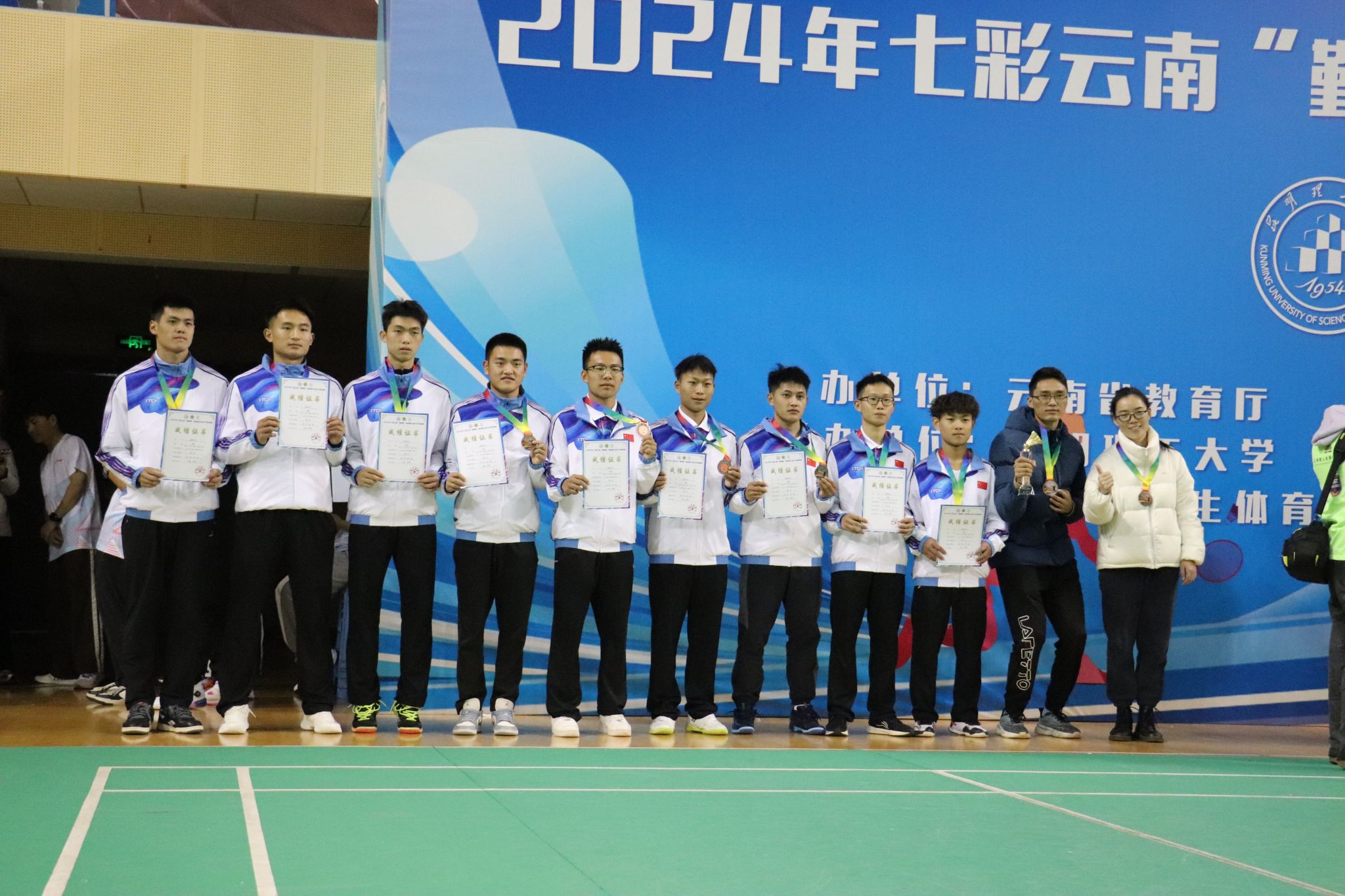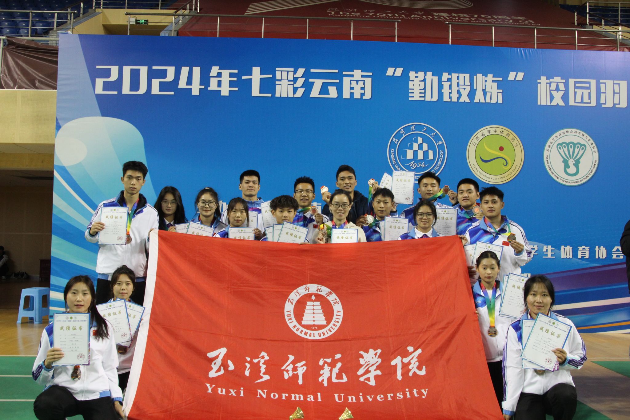 玉溪师范学院羽毛球队在团体赛中表现出色,男团和女团均获季军;在单项比赛中,李仲元、刘吉梅获混双亚军,王晓蓉获女单第四名,张敏、陈芝碟获女双第四名的好成绩。