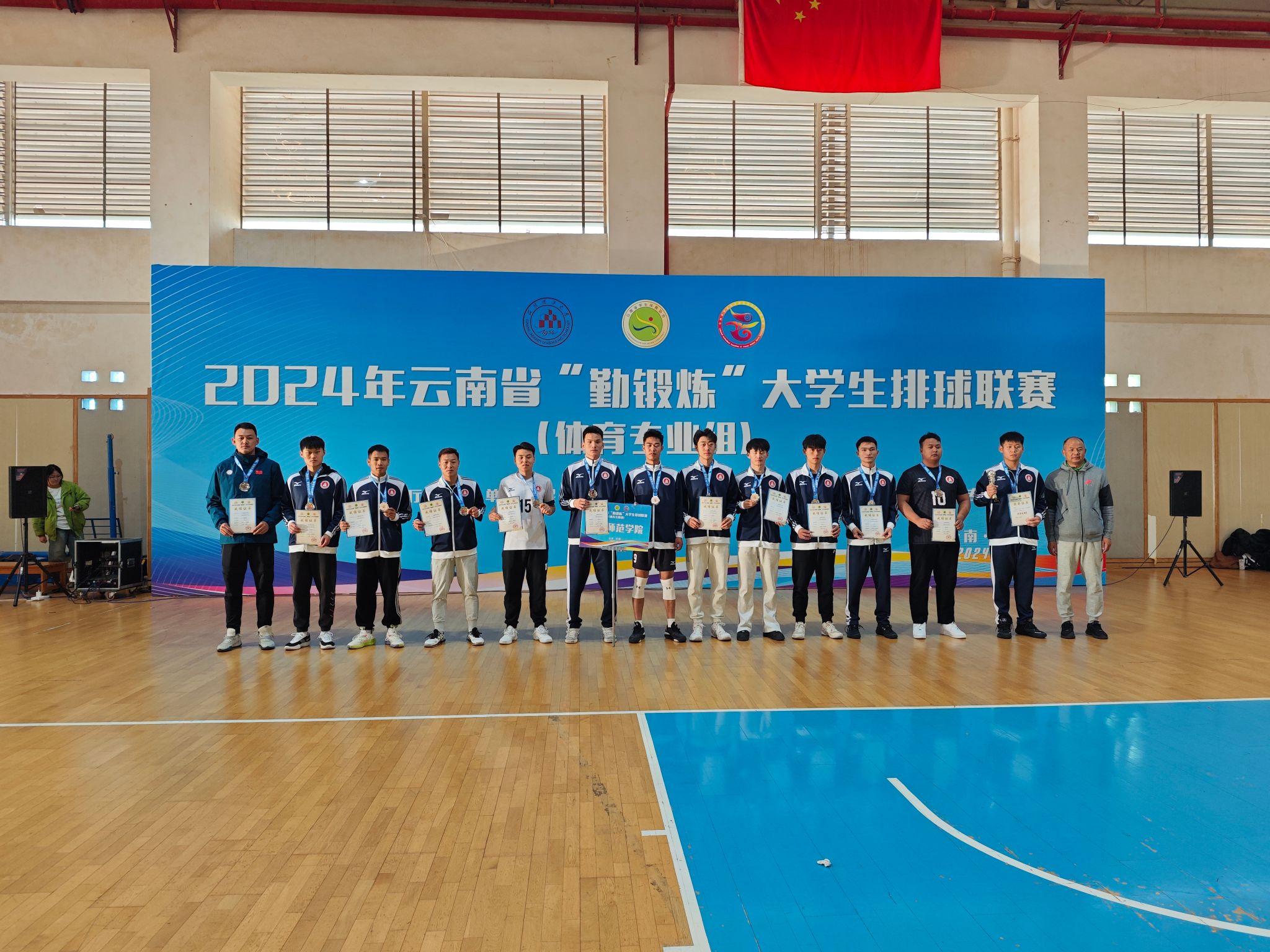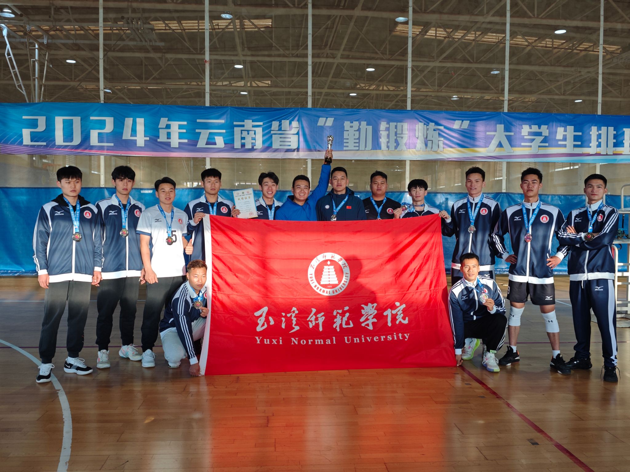 11月30日至12月7日,由云南省教育厅主办、云南省学生体育协会排球专业委员会协办、昆明理工大学承办的2024年云南省“勤锻炼”大学生排球联赛(体育专业组)在昆明举行。本次比赛共有来自云南大学、云南民族大学等21所省内高校的252名队员参加。玉溪师范学院排球队在领队杨晨飞、教练员初立伟、董诗稳的带领下,不畏强手、顽强拼搏,展现了良好的竞技状态和精神风貌,最终获体育专业组男子亚军。