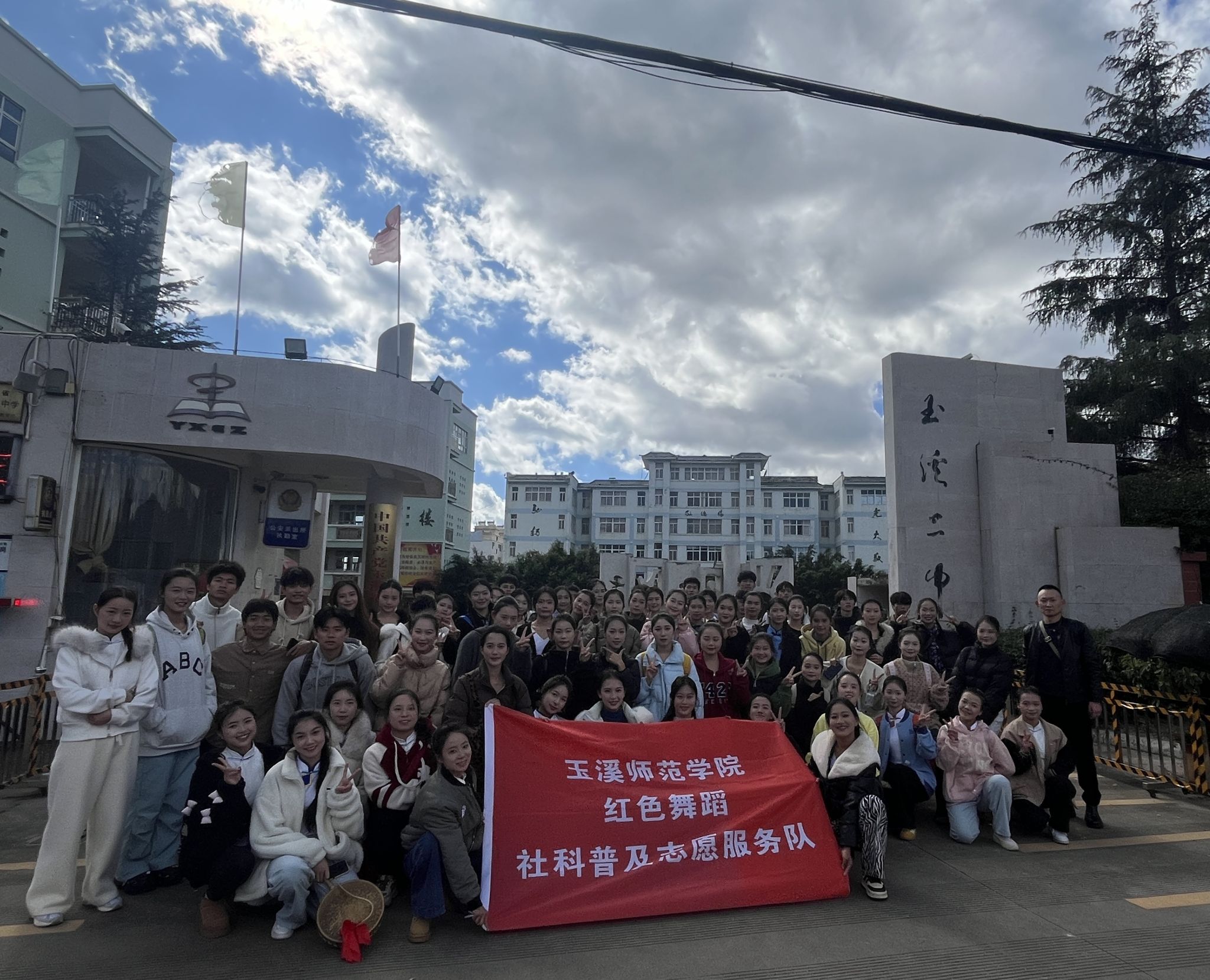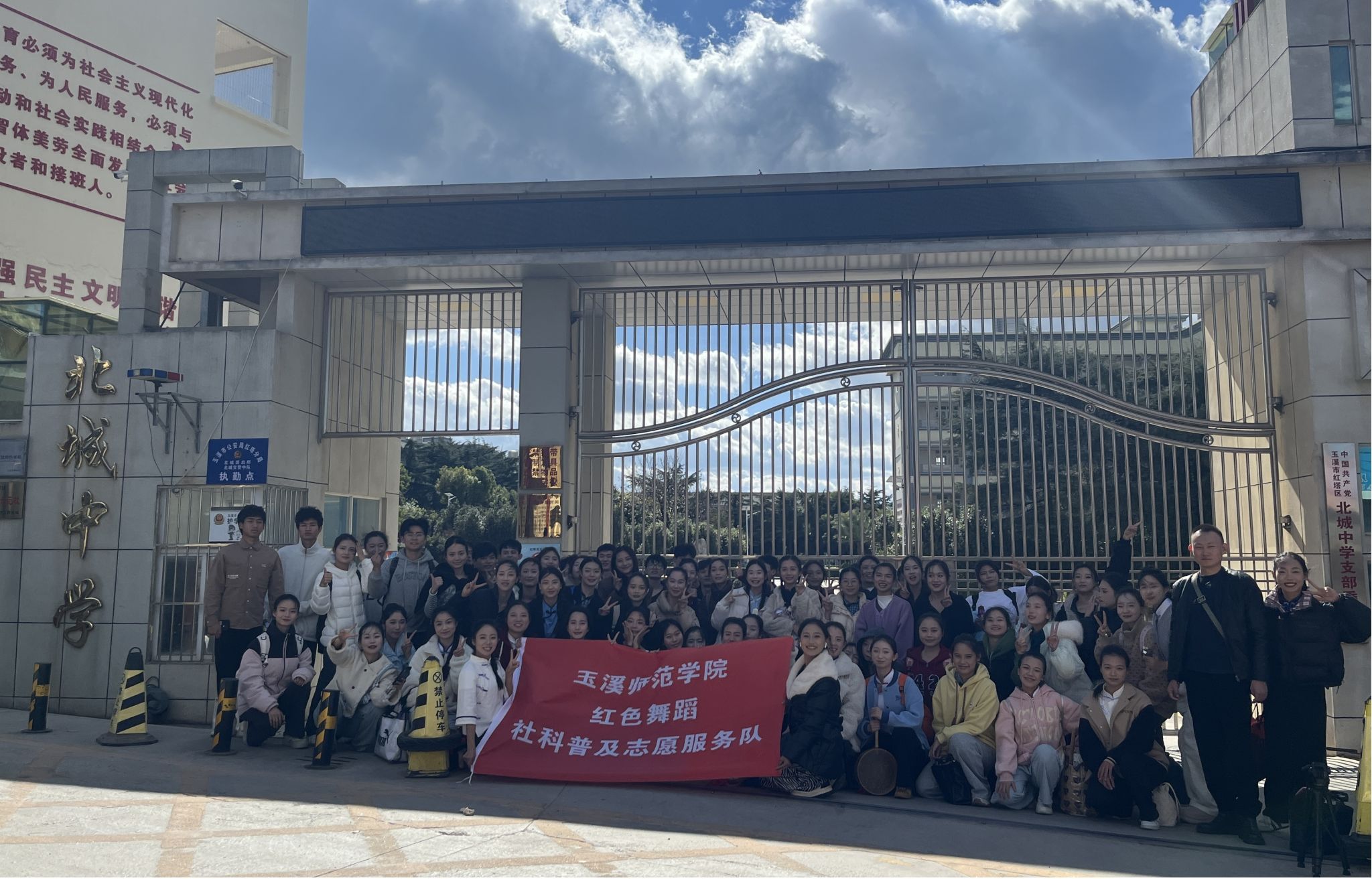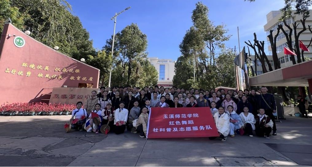 为深入学习贯彻习近平文化思想,传承红色基因,弘扬革命精神,积极响应云南省新时代文明实践社科普及志愿服务行动项目的号召,近日,玉溪师范学院音乐学院教师杜海带领玉溪师范学院红色舞蹈社科普及志愿服务队,先后到玉溪第四中学、玉溪第二中学、北城中学、后所中学、玉溪市民族中学,开展红色经典舞蹈进校园志愿演出活动,旨在以舞蹈形式,让红色文化走进中学校园,激发学生爱国情感,增强文化自信。