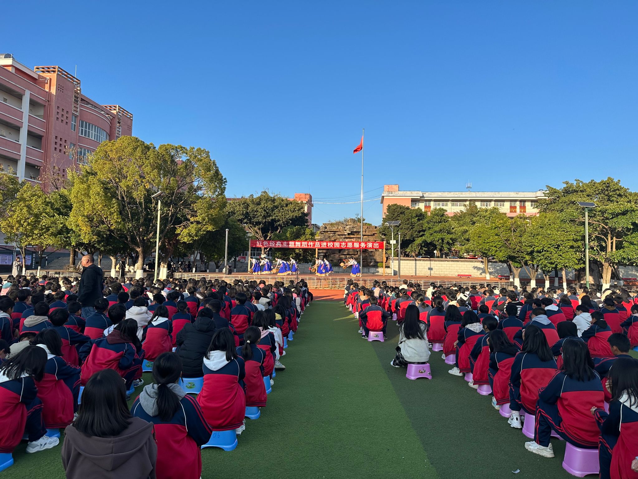 12月16日,志愿服务队到玉溪市民族中学演出。此次演出促进了两校之间的友谊与合作,增进了彼此的了解和信任,丰富了民族中学校园文化内涵,为校园文化多元化发展注入了活力,推动了校园文化不断传承创新。