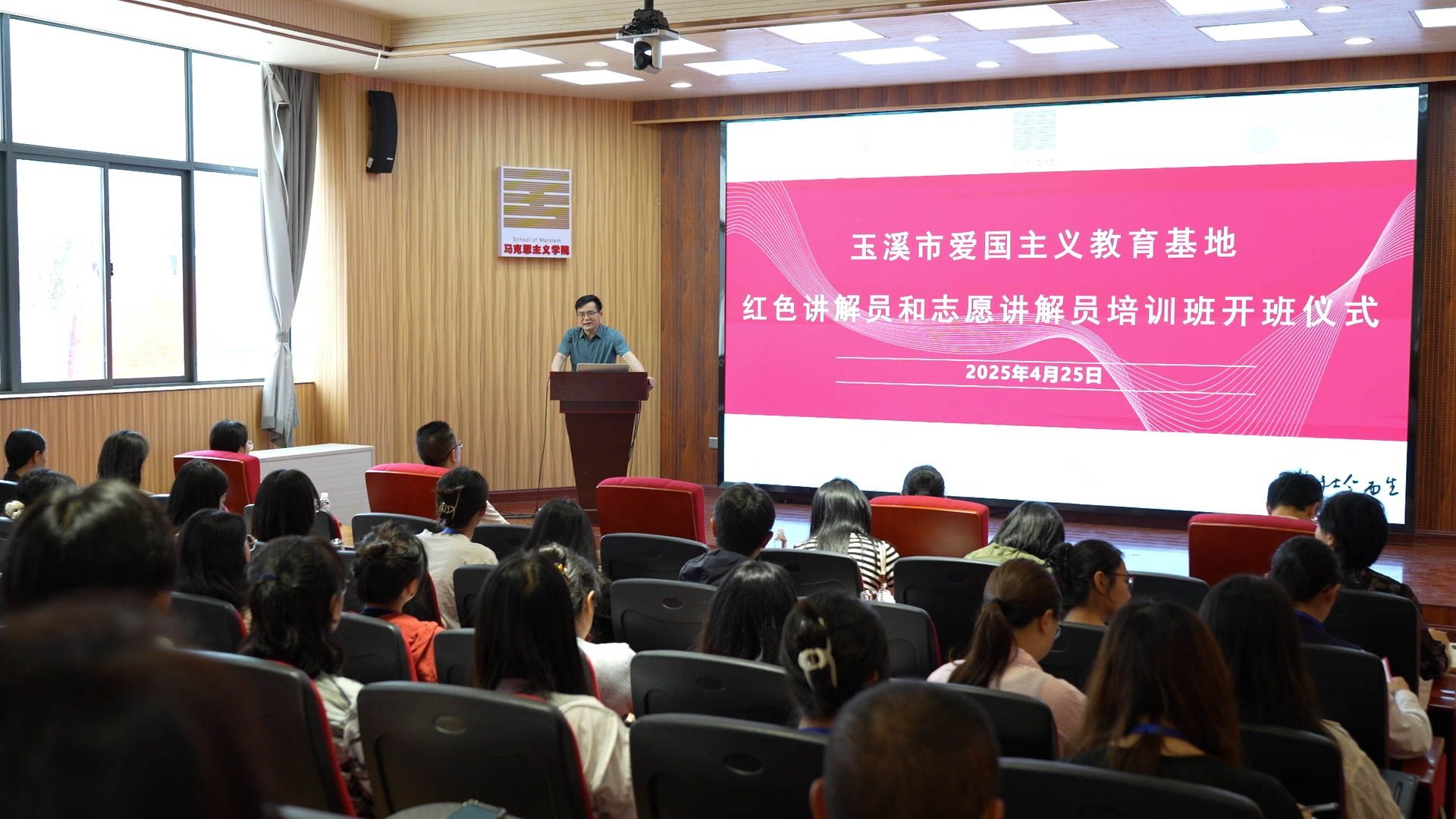 传承红色基因,讲好红色故事。4月25日下午,玉溪市爱国主义教育基地红色讲解员和志愿讲解员培训班在玉溪师范学院马克思主义学院四耳报告厅开班,60余名学员参加本次培训。
