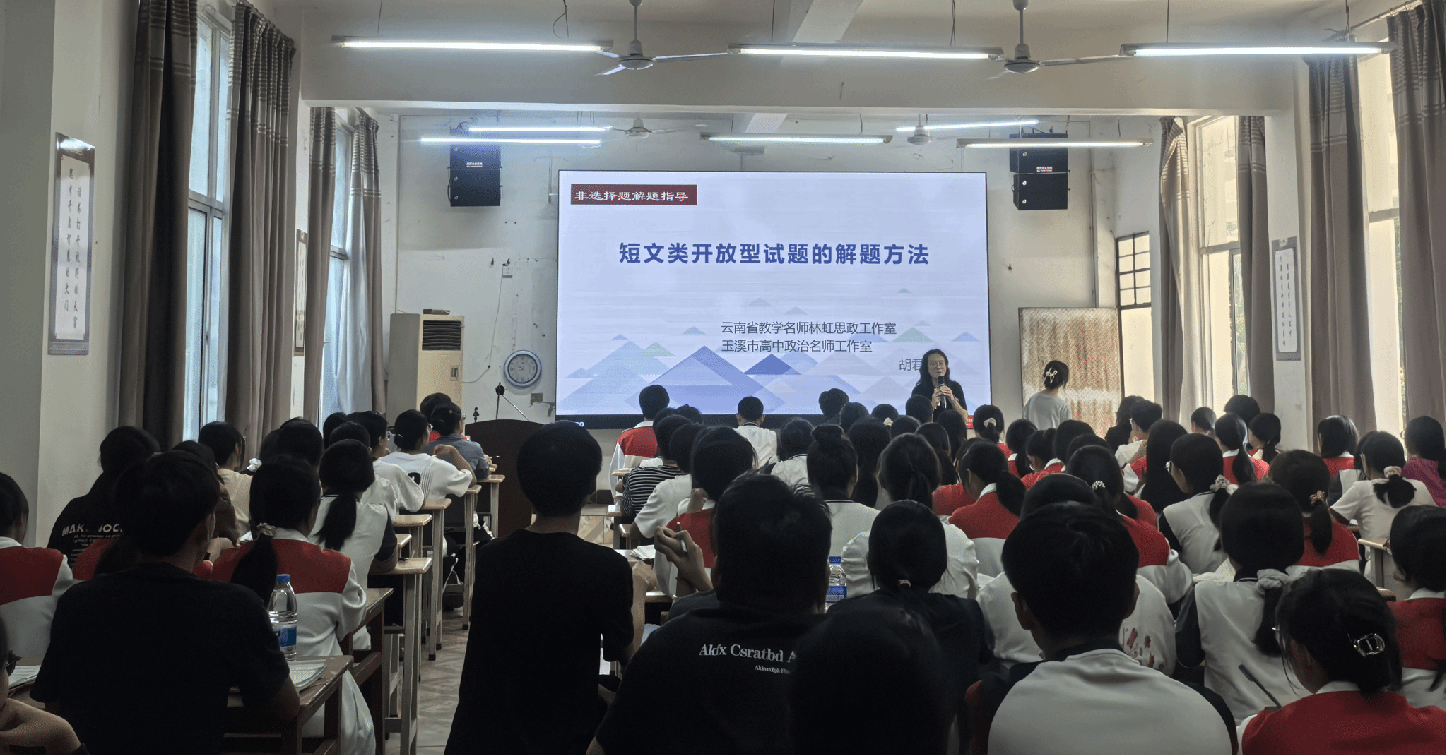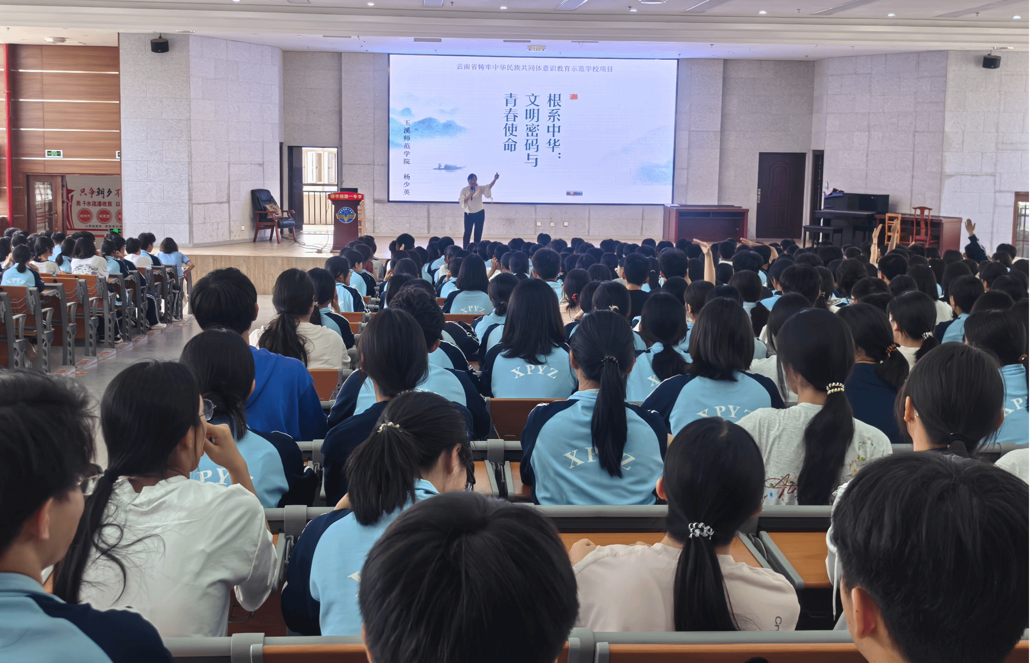 为进一步加强示范学校培育,形成推进学校铸牢中华民族共同体意识教育的特色和亮点,推动思政教育资源向中学延伸,4月23日,玉溪市大中小学思政课一体化协同创新中心携手玉溪师范学院杨少英思政课程名师工作室、云南省基础教育领域省级教学名师林虹高中思政工作室,深入元江县民族中学、新平县第一中学开展铸牢中华民族共同体意识教育主题讲座暨2025年玉溪市高中思政学科助力高考送教活动。活动通过示范课展示、名师讲座、互动交流等形式,助力青少年厚植家国情怀、明晰青春担当。