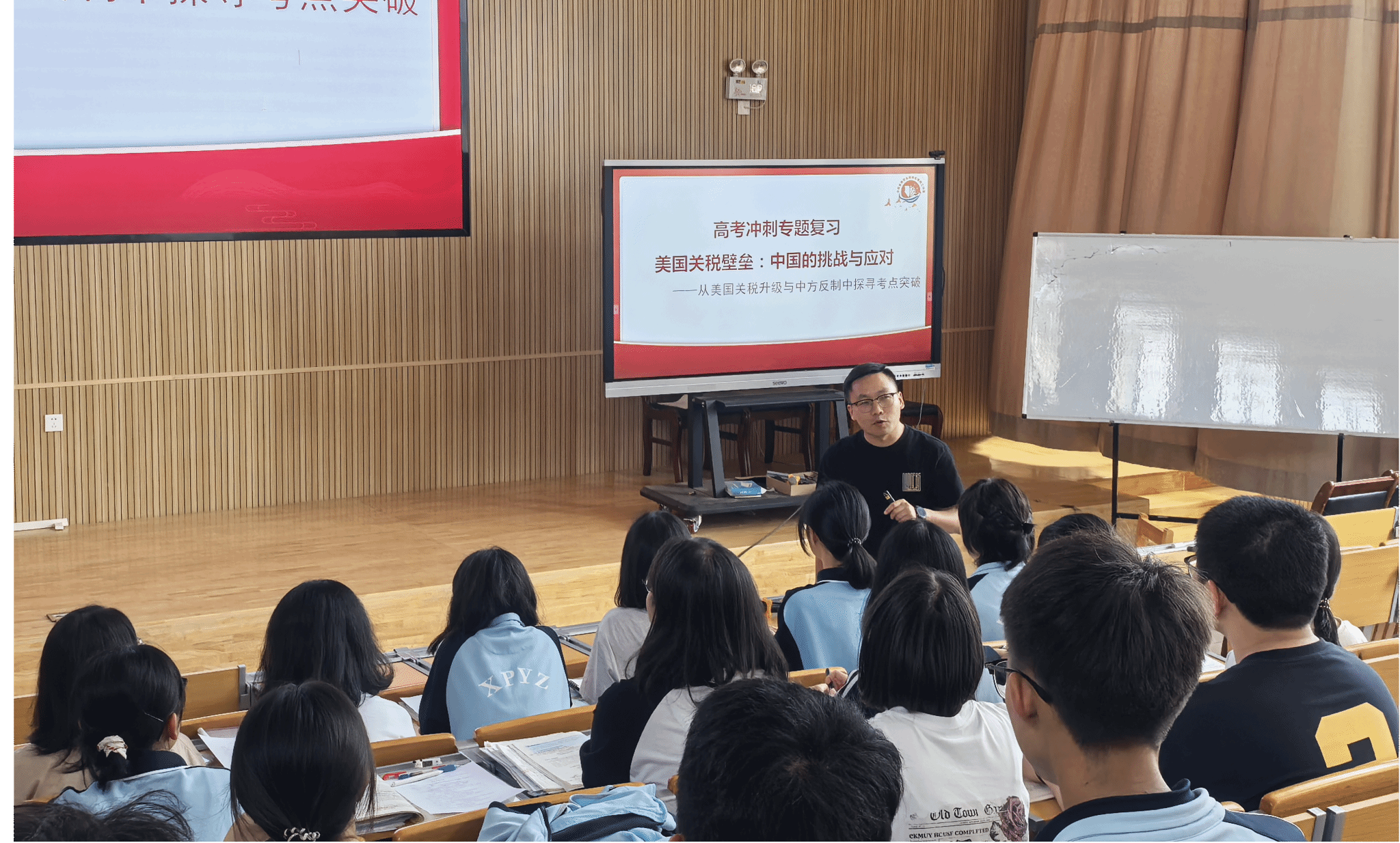 玉溪市政治教研员赵加宾老师带来《美国关税壁垒:中国的挑战与应对——从美国关税升级与中方反制中探寻考点突破》的精彩内容。赵老师紧密结合当下国际经济热点,将复杂的政治经济现象与高中思政考点巧妙融合。他深入浅出的讲解,让学生们在理解国际局势的同时,深刻领会思政学科知识在现实中的运用,为相关考点的复习备考提供了全新视角。