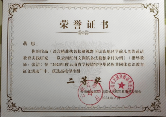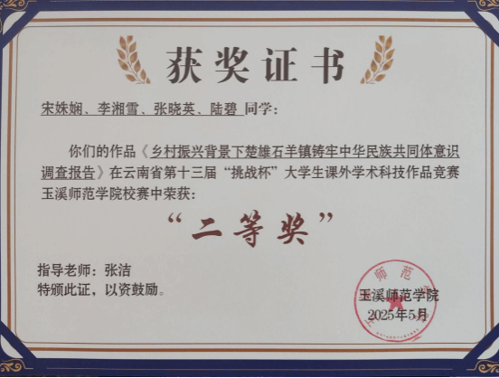 近日,中共云南省委教育工委公布2025年“小我融入大我,青春献给祖国”云南省高校师生主题社会实践活动典型案例评选结果。玉溪师范学院“守望者”实践团凭借“‘边疆同心・青春助兴’民族地区国家安全教育与中华民族共同体意识培育实践”项目获“服务标兵”类典型案例。