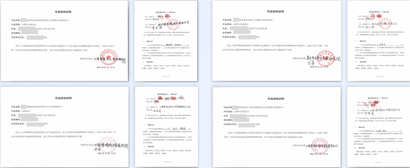 视觉传达设计专业学生作品被地方政府和企业采纳的协议、证明