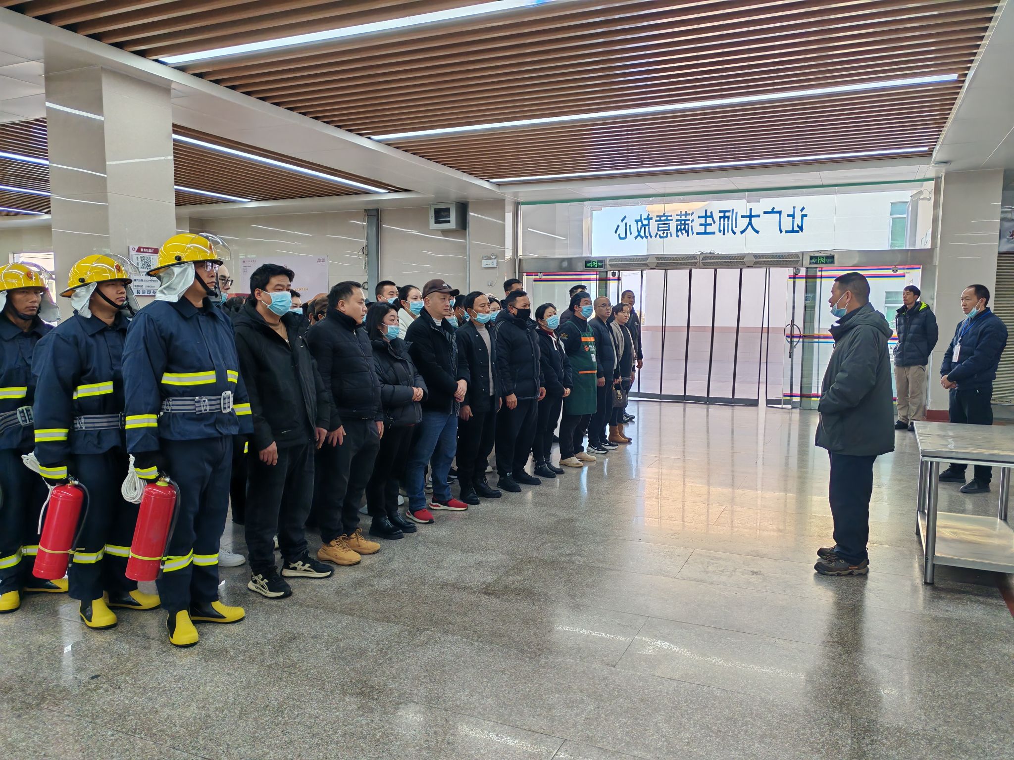 为持续强化安全管理水平,扎实做好安全生产工作,切实为学校事业高质量发展营造安全稳定的校园环境,1月10日,资产经营有限公司联合保卫处、后勤服务中心开展食堂油锅起火应急处置演练。演练邀请学校消防维保单位——玉溪中消安科技有限公司工作人员现场指导。学校各部门有关人员及各食堂负责人、厨师50余人参加演练。