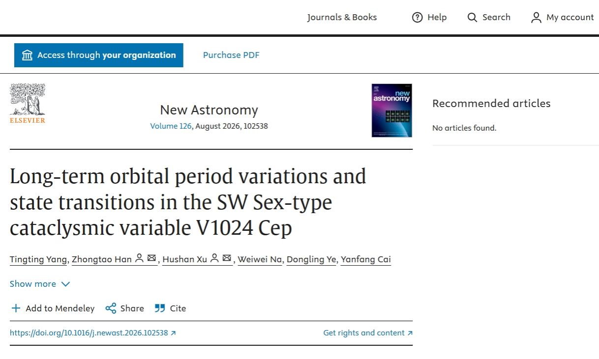 据悉,The Astrophysical Journal 由美国天文学会(American Astronomical Society, AAS)主办、IOP Publishing 出版,是国际天文学与天体物理领域极具影响力的顶级学术期刊,长期位于 JCR 分区 Q1 区 TOP(中国科学院二区,影响因子 5.4),在恒星演化、系外行星、高能天体物理等研究方向具有重要学术引领作用。New Astronomy 由 Elsevier 出版,主要刊发天文学、天体物理及天文观测技术等领域研究成果,现位于 JCR 分区 Q3 区(中国科学院四区,影响因子 2.1),在天文数值模拟、数据处理及计算天体物理等细分领域具有较高的学术参考价值。