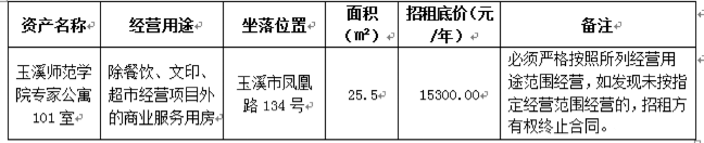 2.项目名称:玉溪师范学院专家公寓101室公开招租项目