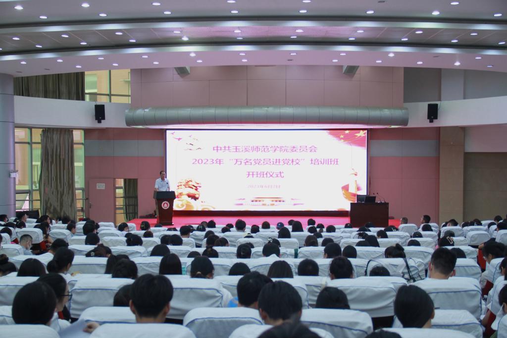 为深入学习贯彻习近平新时代中国特色社会主义思想和党的二十大精神,推动主题教育不断走深走实,强化思想理论武器,进一步发挥“两个作用”,2023年6月2日,玉溪师范学院党委2023年“万名党员进党校”集中培训班开班,来自全校各基层党组织的450余名师生党员参加开班仪式。
