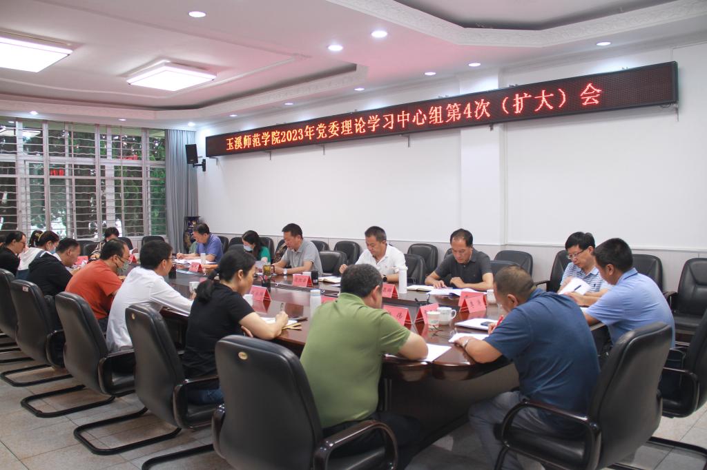 为认真落实学习贯彻习近平新时代中国特色社会主义思想主题教育的总要求,及时跟进学习习近平总书记最新重要讲话精神、全省教育发展大会精神,6月7日上午,玉溪师范学院召开党委理论学习中心组第4次(扩大)会。校党委理论学习中心组全体成员,副校长杨伟,党务部门主要负责人参加学习,校党委书记姜家雄主持学习。