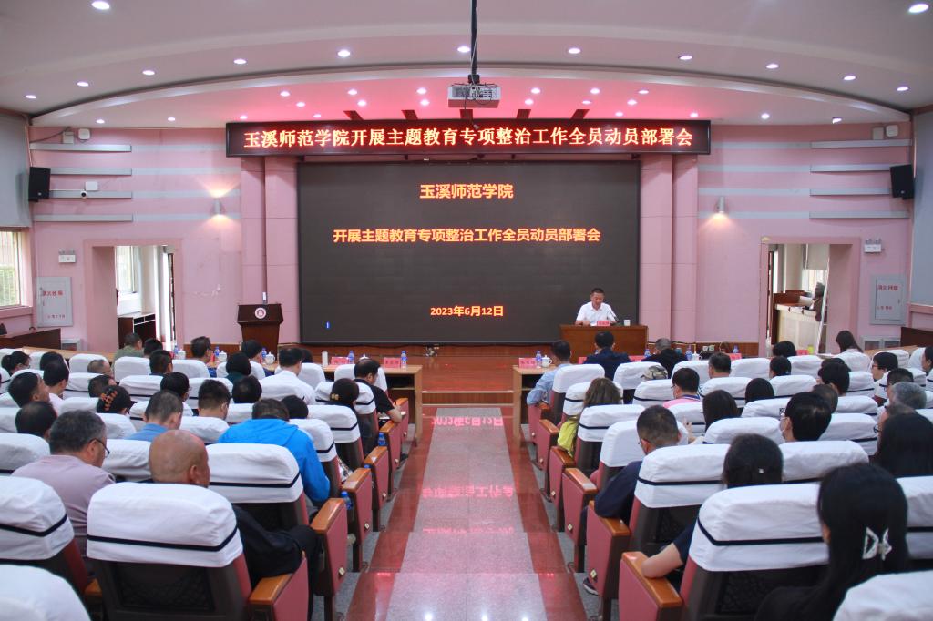6月12日上午,玉溪师范学院开展主题教育专项整治工作全员动员部署会暨学校党委主题教育领导小组第二次(扩大)会在科学讲堂召开,学校党政领导,全体处级领导干部(含非实职领导)参加会议。校党委书记、主题教育领导小组组长姜家雄主持会议。